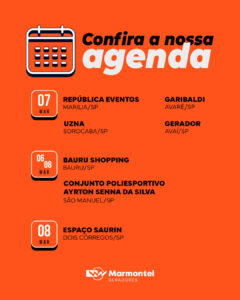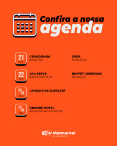 No dia 22, a equipe atua no Jaú Serve, em Barra Bonita, e no Buffet Caversan, em Bauru, garantindo que cada evento aconteça com segurança e sem falhas no fornecimento elétrico. Já nos dias 24 e 25, a Marmontel marca presença em Lençóis Paulista, ampliando sua atuação regional.
